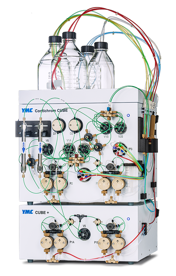MCSGP is a chromatographic method operated continuously using two columns, compared to the batch mode of single-column chromatography (see above). Much of the basic principle, however, remains the same. In a chromatographic process, the impure feed mixture is separated, giving fractions with pure product, fractions with a mixture of impurities and product, and fractions containing only impurities. Pure product fractions are collected and impure product-containing side fractions are discarded or re-processed. If product containing side fractions are discarded, valuable product is lost. Reprocessing the side fractions accumulates impurities and applicability is thus limited. Moreover, reprocessing reduces overall productivity. MCSGPcan isolate most of the product included in the starting material by internally recycling product-containing side fractions and repeatedly separating impurities and pure product. The recycling is done automatically, without the need for off-line analysis. The impure side fractions are transferred from one chromatographic column to another. Fresh feed material is added every cycle. This ensures continuous operation and leads to a product with high yield without compromising purity.